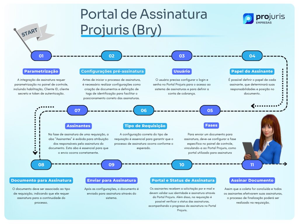 O Portal de Assinatura Projuris é a funcionalidade que permite enviar documentos para assinatura eletrônica ou digital diretamente a partir das requisições do sistema, sem depender de integrações externas no dia a dia do usuário.